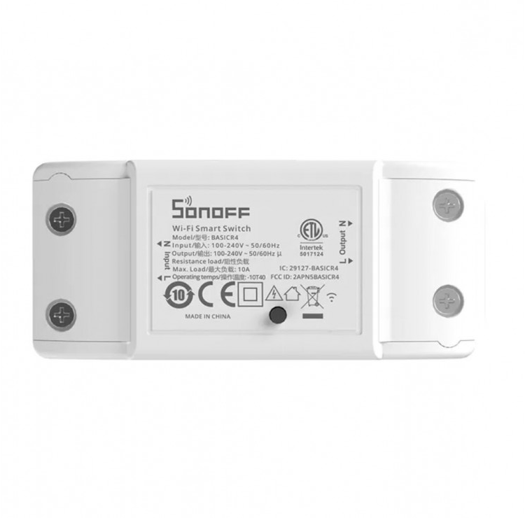 The Sonoff Basic R4 is a smart relay switch that supports 90–250V AC at up to 10 amps. It can be operated using a basic physical button or remotely via the eWeLink app, offering flexible control of lights and appliances.